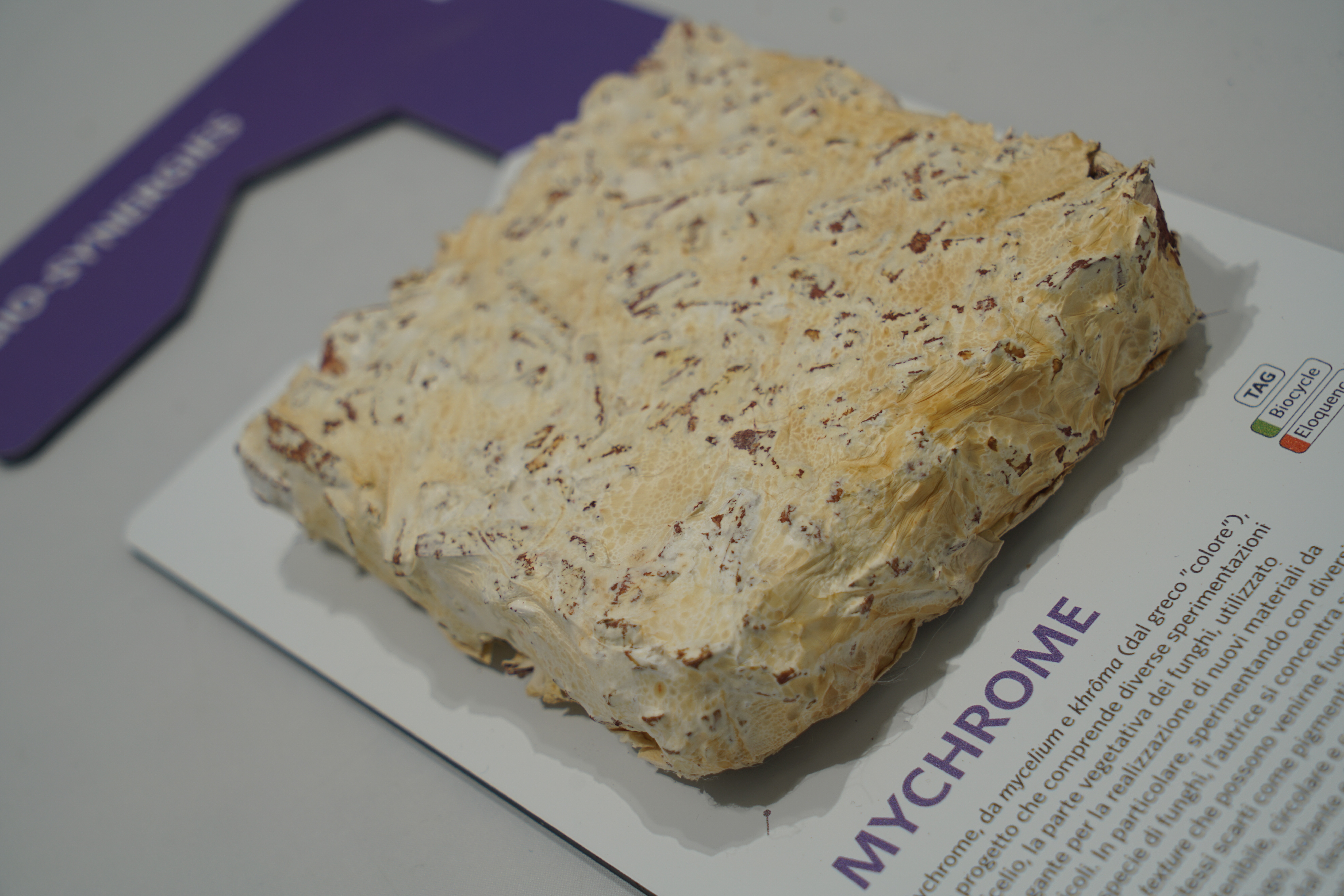 Mychrome, da mycelium e khroma (dal greco "colore"), è un progetto che comprende diverse sperimentazioni sul micelio, la parte vegetativa dei funghi, utilizzato come legante per la realizzazione di nuovi materiali da scarti agricoli. In particolare, sperimentando con diversi substrati e specie di funghi, l'autrice si concentra sul colore e sulle texture che possono venirne fuori, utilizzando gli stessi scarti come pigmenti. Il risultato è un materiale sostenibile, circolare e compostabile, naturalmente ignifugo, isolante e fonoassorbente per diverse applicazioni dal design, agli interni, all'architettura, la cui valenza estetica viene posta in primo piano.