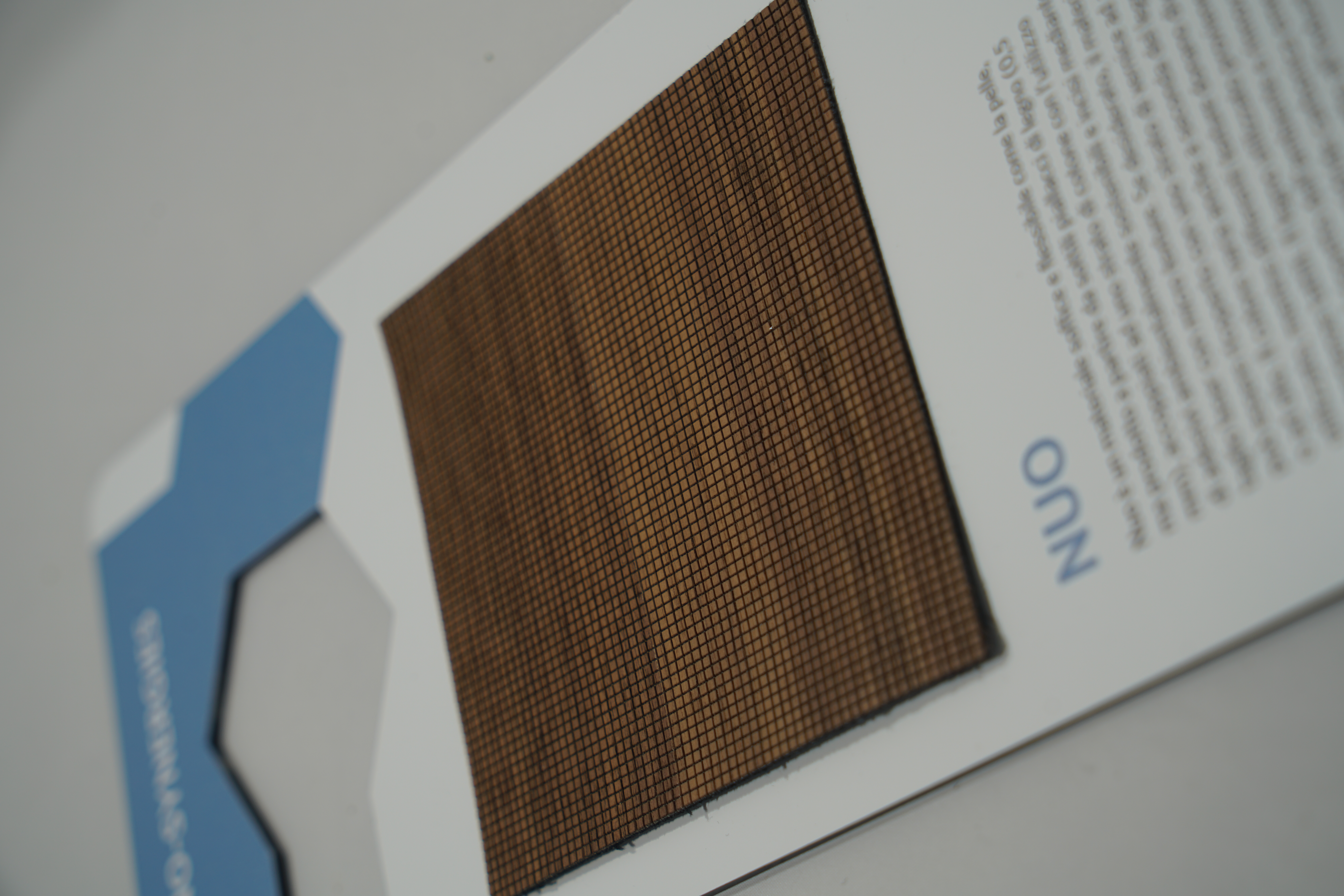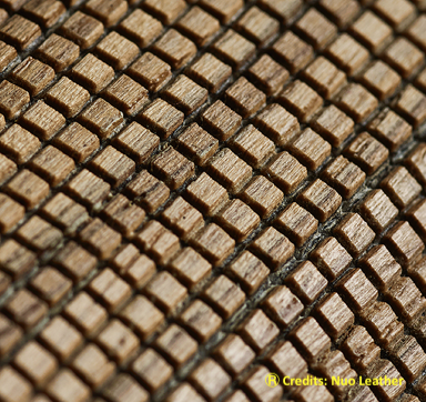 Nuo è un materiale soffice e flessibile come la pelle, ma prodotto a partire da sottili piallacci di legno (0,5 mm), accoppiati ad uno strato di cotone con l'utilizzo di adesivi ambientalmente sostenibili e incisi mediante taglio laser con micro texture. Se desiderato, il materiale può essere ricoperto con uno strato di vernice ad acqua o ad olio. Il colore varia anche a seconda del legno utilizzato, mentre differenti texture donano diverse esperienze tattili. Il legno utilizzato proviene da foreste gestite nel rispetto dell'ambiente e rinnovate, mentre la riduzione dell'anidride carbonica emessa durante il processo è del 60% rispetto all'industria della vera pelle.