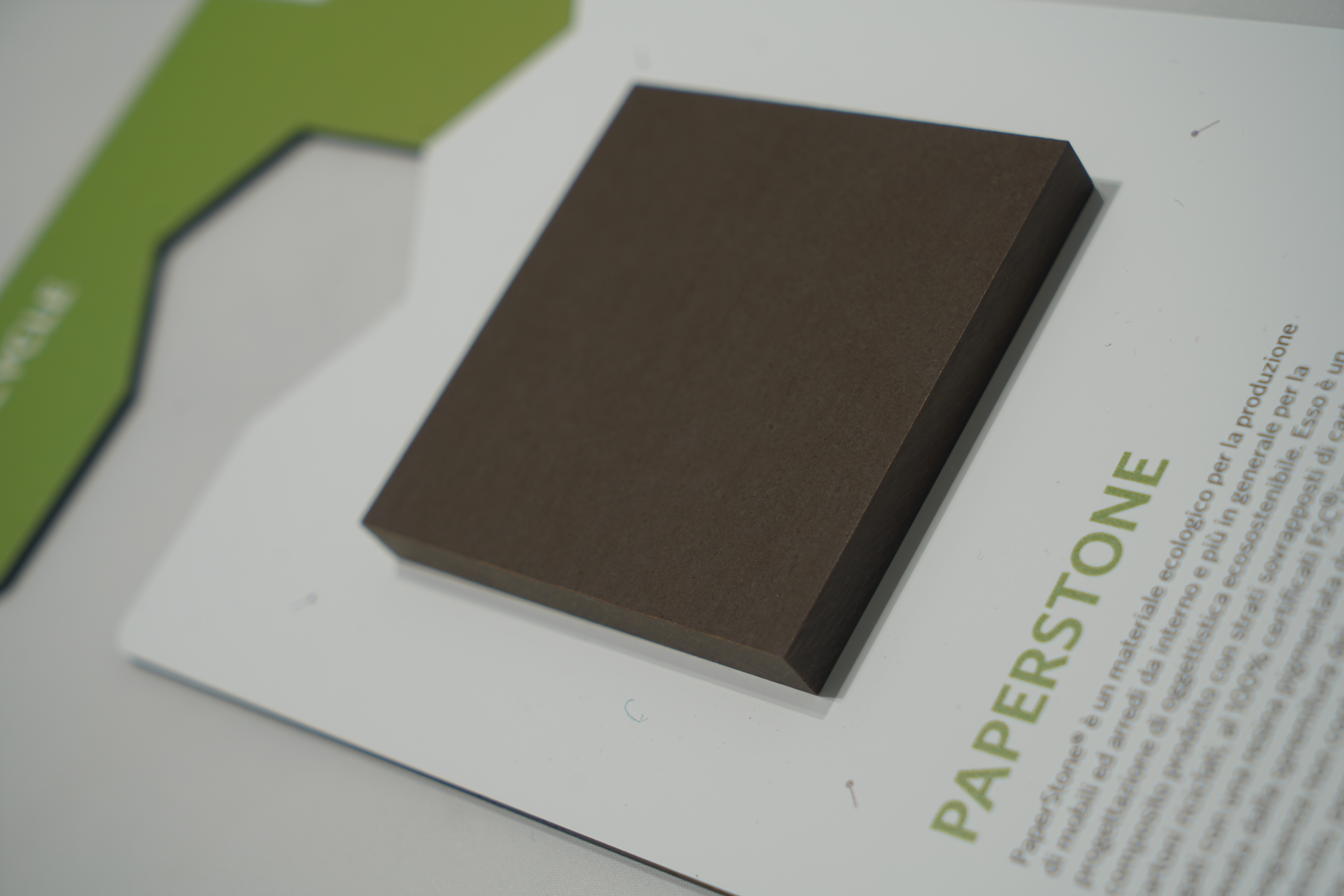 PaperStone® è un materiale ecologico per la produzione di mobili ed arredi da interno e più in generale per la progettazione di oggettistica ecosostenibile. Esso è un composito prodotto con strati sovrapposti di carta e cartoni riciclati, al 100% certificati FSC®, impregnati e legati con una resina pigmentata denominata PetroFree™ ricavata dalla spremitura dei gusci degli anacardi e di conseguenza non contenente composti chimici derivanti da petrolio, permettendo il riciclo totale del materiale insieme alla carta. Paperstone gode di ottime prestazioni, resiste fino a 180°C, è idrorepellente al 100%, è atossico ed idoneo al contatto con i cibi.